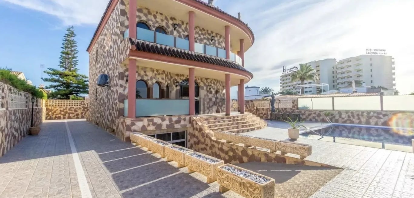 Imagine waking up just steps from the beach and enjoying the fresh sea breeze every day. Located less than 100 meters from the beautiful coast of La Zenia, this beautiful villa has everything you need for a perfect holiday by the sea. With 4 spacious bedrooms and 6 bathrooms spread over two floors, there is plenty of room for family and friends. Outdoor Paradise The villa is surrounded by a lush, well-kept garden, creating a peaceful and private atmosphere. Relax by the refreshing pool or soak u...
