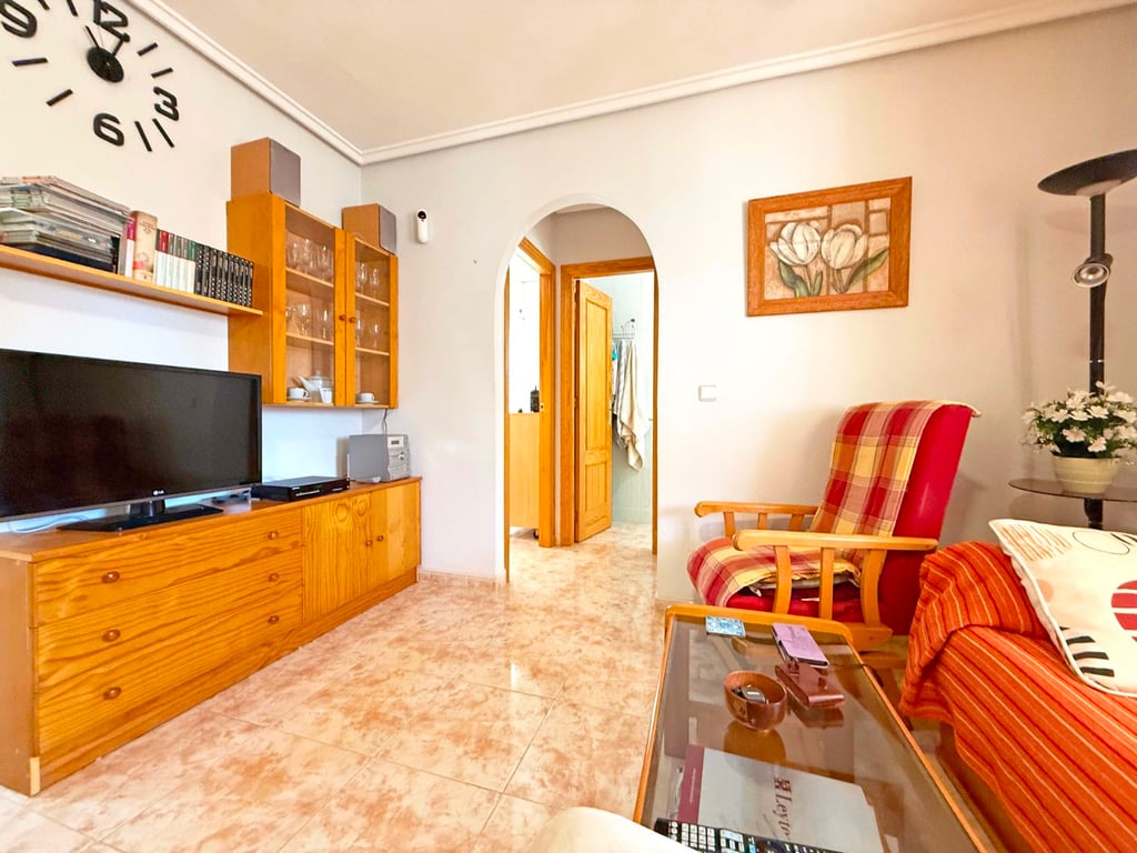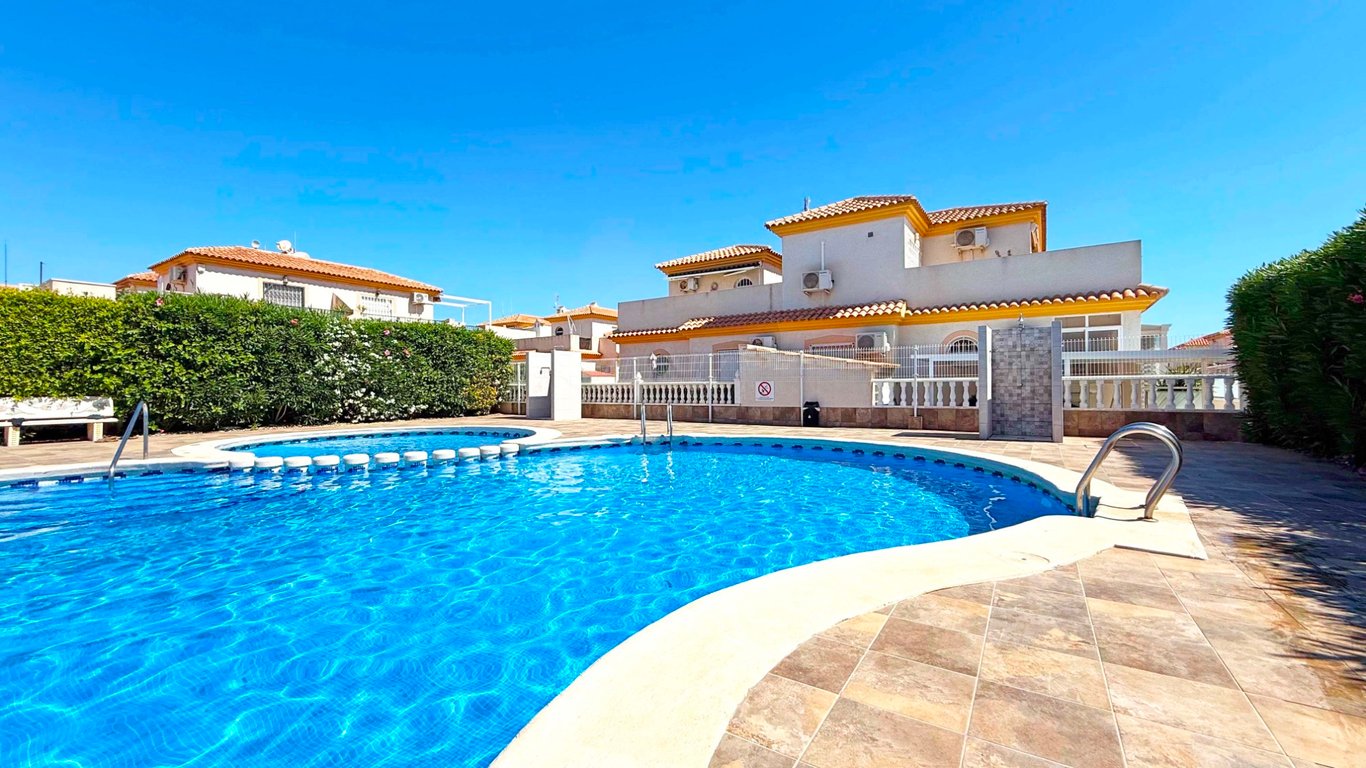 Welcome to this charming townhouse located in the sought-after Residential Iria IV in Playa Flamenca. This property offers a perfect blend of comfort, outdoor living, and a secure community setting. Boasting 2 bedrooms and 2 bathrooms, the home features a spacious, fully tiled ground floor terrace with an elevated section ideal for dining, sunbathing, or entertaining guests. The private roof terrace offers additional space to relax and enjoy the Mediterranean sun. The property comes with private...