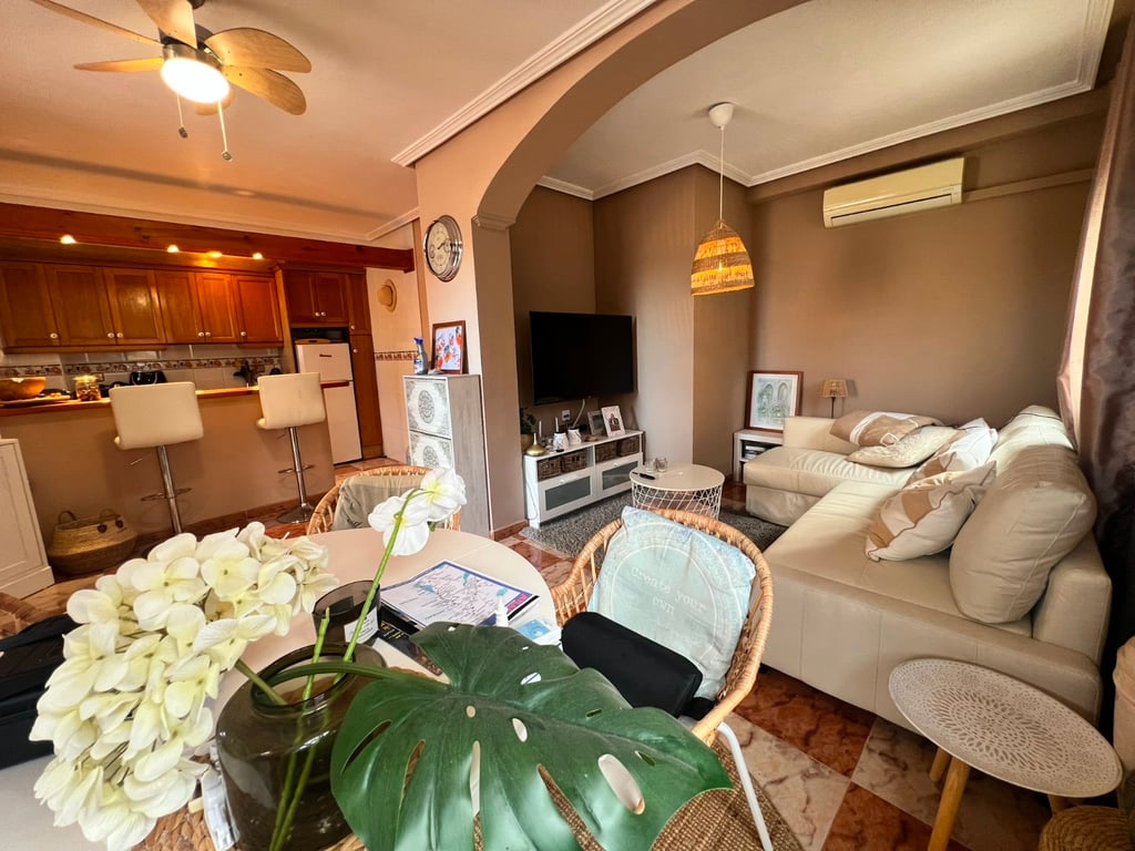 This 2 bedroom quattro house is located in the heart of Orihuela Costa and close to the Zenia Boulevard and La Zenia Beach, the property is in a quiet and secluded area with a large community pool. The beach is a short bicycle ride away on very quiet roads and paths.