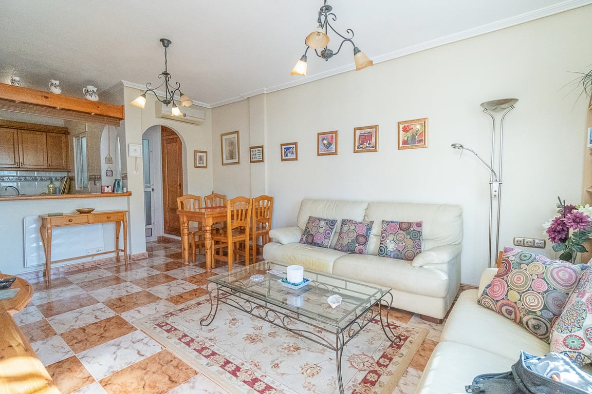 South-Facing Bungalow with Solarium – Between Cabo Roig & La Zenia Well-located south-facing bungalow offering 65 m2 of living space on a single level, perfectly positioned between the popular areas of Cabo Roig and La Zenia. The property comprises two bedrooms, a clean and modern family shower room, a spacious lounge/dining area, and a fully equipped American-style kitchen with an adjacent utility/storage room. The private garden benefits from a south-west orientation, ensuring sun all...