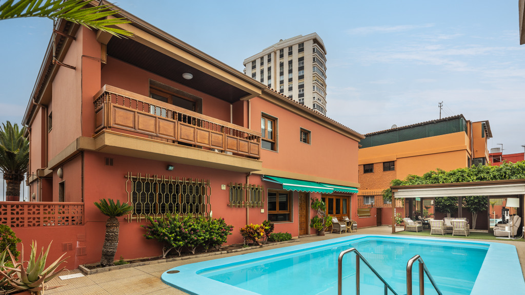 Gilmar Real Estate presents for sale this detached villa in Ciudad Jardín, located next to the Alcaravaneras Beach. This property has a privileged location and fulfils the wishes of those looking for a luxury residence in the heart of Las Palmas de Gran Canaria. Two-storey detached house with garden, swimming pool, outdoor gazebo and ample spaces. It is located on a plot of 625 square metres, surrounded by terraces that provide a relaxing atmosphere and enjoy the evening sun. The outdoor area c...