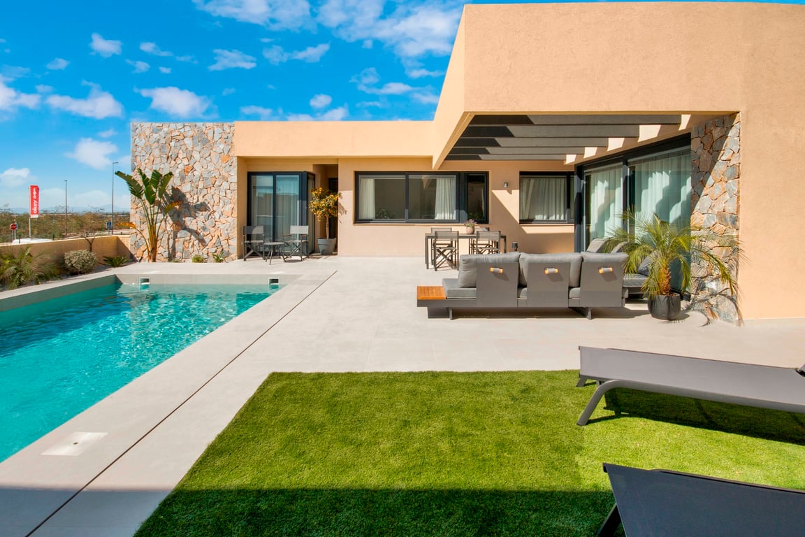 Spacious contemporary design villas with 3 bedrooms 2 bathrooms, 1 guest toilet, private pool and off-road parking in a beautiful location at the foot of the mountains. These villas are designed to ensure a natural way of life. They are located on the middle rows of the development next to large green areas and give you direct access to the mountain trails behind. The beauty of the surrounding nature can be quietly enjoyed from the spacious, sunny, south-facing garden and terraces with endless...