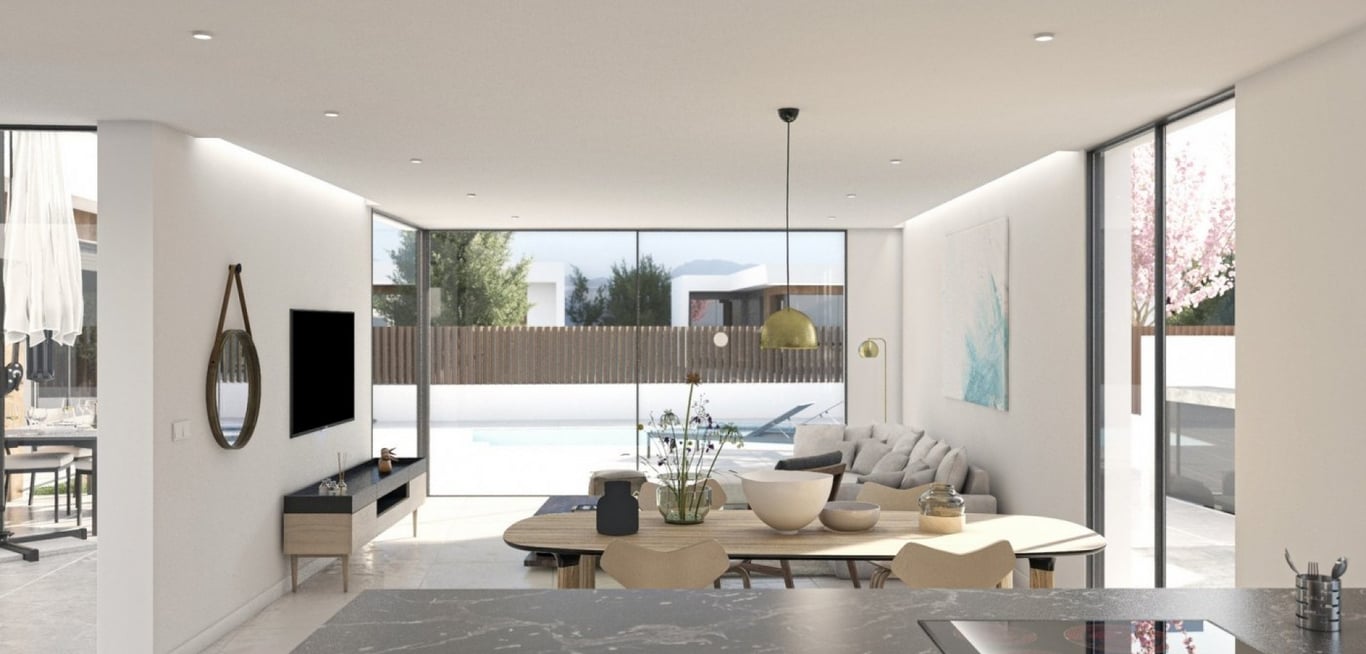 NEW BUILD VILLAS IN ALTAONA GOLF RESORT, MURCIA New Build residencial of beautiful villas in Altaona Golf resort, Murcia. Located in a privileged environment where we can live quietly, in contact with nature and the mountains, we achieve quality of life, fresh air and open spaces. You have 5 models to choose. Villas build on the plots from 320 m2 with 3 bedrooms, 2 bathrooms and a private pool with multiple options where quality is our highest and where we integrate the exterior with the i...