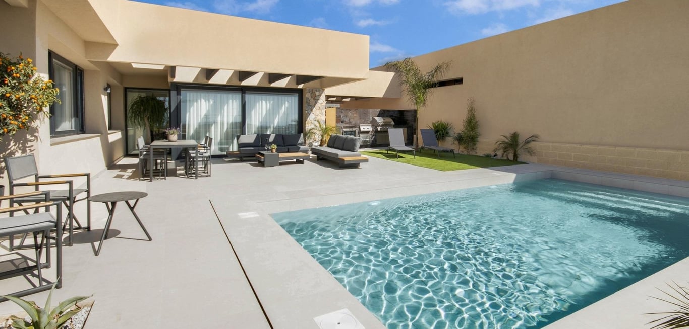 NEW BUILD VILLAS IN ALTOANA GOLF RESORT, MURCIA New Build residential of beautiful villas in Altaona Golf resort, Murcia. Villa has 3 bedrooms, 2 bathrooms, open plan kitchen with the lounge area abd direct access to the garden with private pool and parking space. Villas are designed specifically to provide endless views of the golf course, lakes and distant countryside, from inside or out. South-facing gardens and terraces ensure that you can enjoy the warm winter sun, and generous gla...