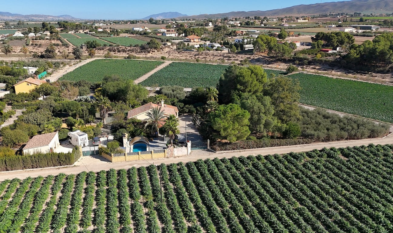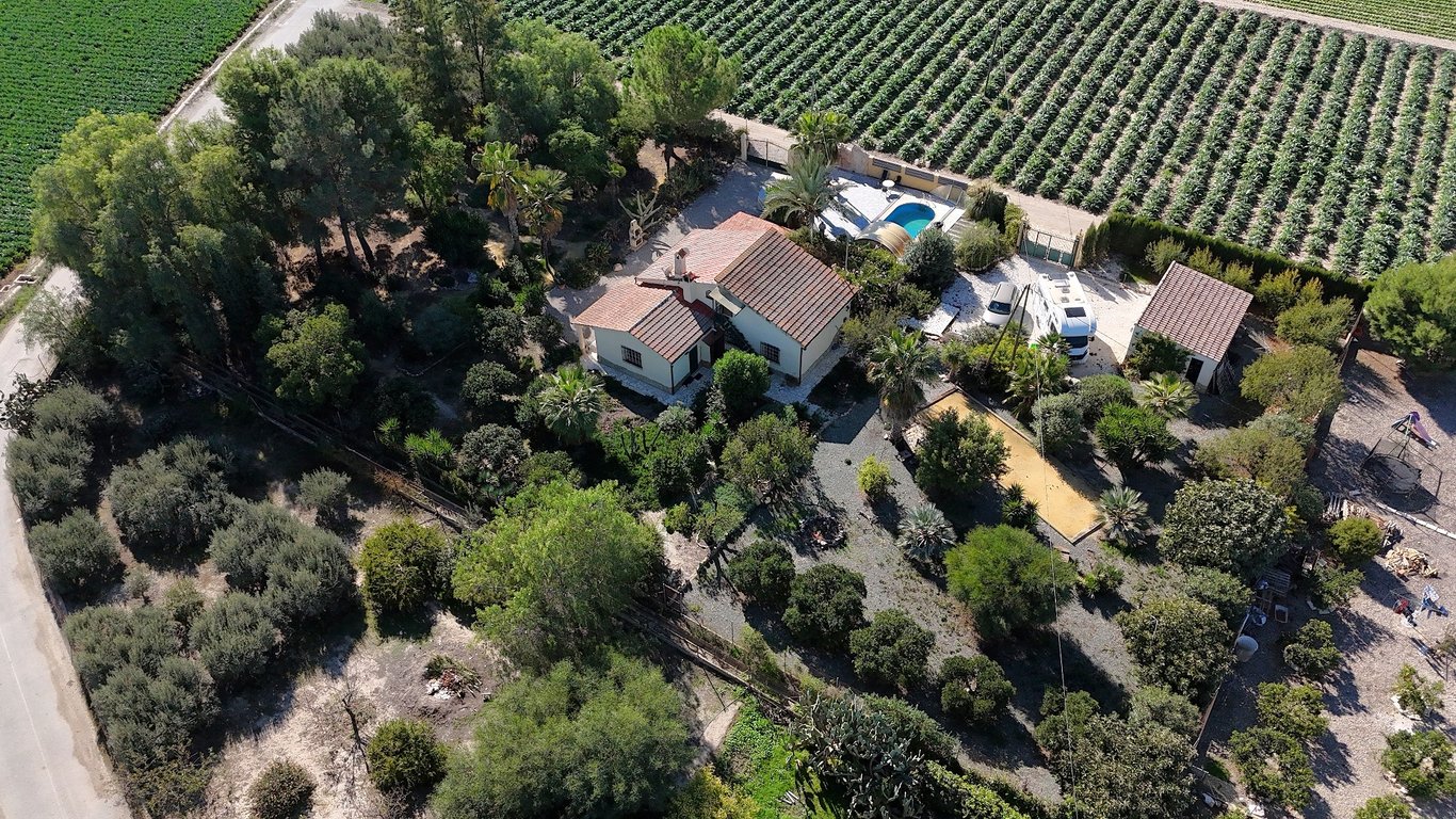 3 bedroom 1 bathroom detached Country House set over 2 floors with the upstairs being a separate 1 bed 1 bath annex, detached double garage with attached bathroom, 6,55 m x 3,20 m swimming pool, BBQ, set on a fully fenced and gated plot of 3554 m2 of land with beautiful landscaped mature gardens. Also an established orchard, petanque area; situated only a 3 minute drive from the village of Aguaderas with a number of amenities, 10 minutes’ drive to the city of Lorca with its outdoor shopping cent...