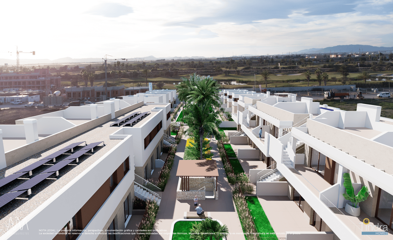 Welcome to your new home! This exclusive new development combines modern architecture with high-quality living comfort in a prime location – just minutes from the golf course. The stylishly designed single-family homes feature: 3 spacious bedrooms – ideal for families, guests, or a home office 2 modern bathrooms – high-quality fittings with elegant fixtures Open-plan living and dining area – flooded with light and perfect for a relaxing atmosphere Communal pool – enjoy relaxing times w...