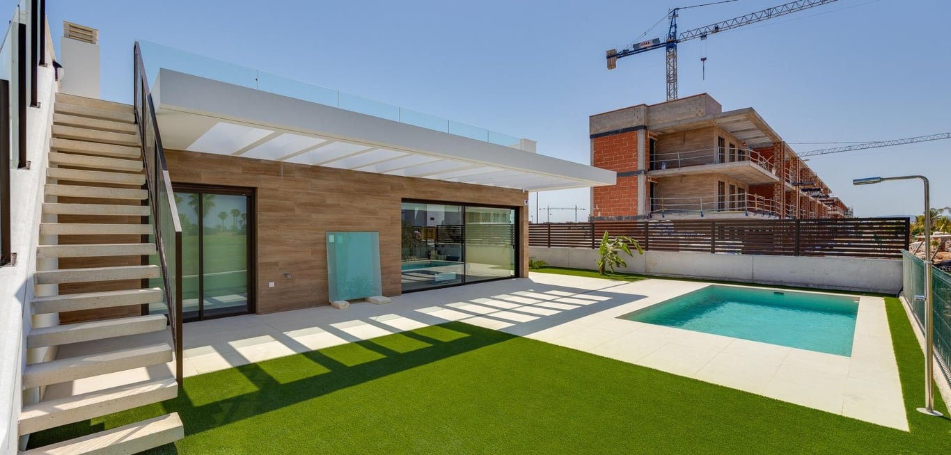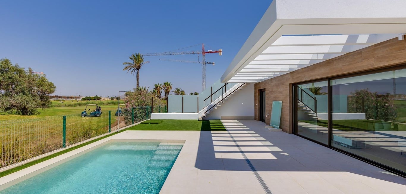 NEW BUILD RESIDENTIAL COMPLEX NEAR LA SERENA GOLF, LOS ALCAZARES 20 detached villas within a front line golf complex. The villas have 3 bedrooms and 3 bathrooms, basement with garage and storage room, private swimming pool and private solarium. Residential located in a frontline of the prestigious golf course “La Serena Golf”. This golf course is well renowned for its lakes and vegetation that interweave with the golf course. The water and lakes are present in 16 of the 18 holes, but all the ...
