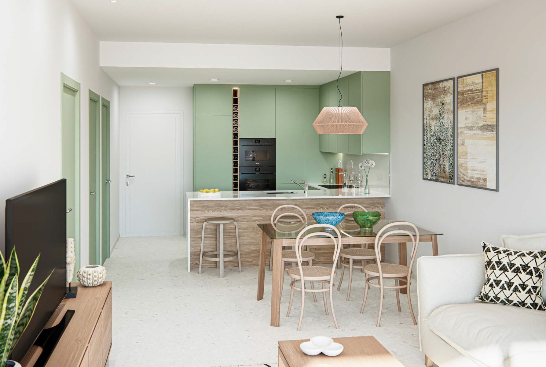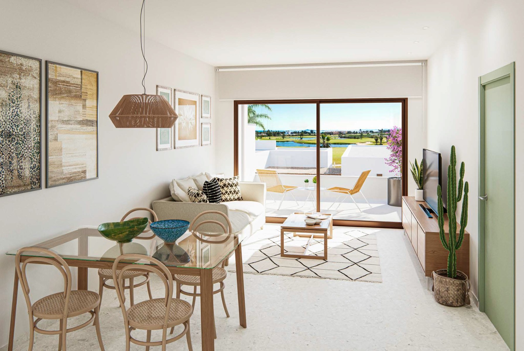 Discover a sophisticated lifestyle in this 16-apartment residential complex located in Los Alcázares, Murcia, next to one of the region's most prestigious golf courses. These elegant two-bedroom, two-bathroom homes have been designed to offer comfort, light, and elegance, with an open-plan fitted kitchen that blends seamlessly into the living room. Each apartment includes a large private terrace, built-in wardrobes, video intercom, storage room, and communal parking space. The residential comp...