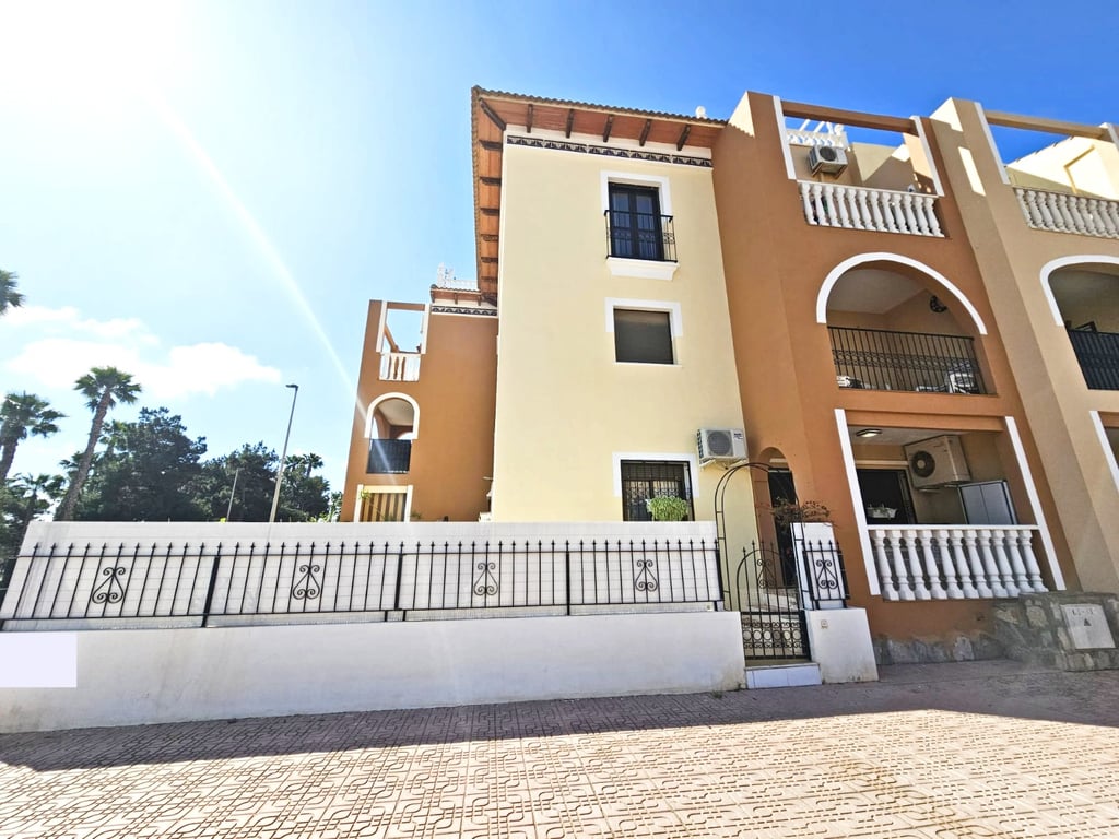Los Alcazares ,Pueblo Patricia on a small complex Playa III a lovely and modern completly reformed fully furnished corner Apartment with 2 bedrooms, 1 bathroom, lounge/diner, fully fitted kitchen, big corner patio with trees, porch, back door with acsess to the comunal pool área with lovely gardens, very close to all amenities and the beach. Lovely Property ideal as a permanent home or to let for holidays.