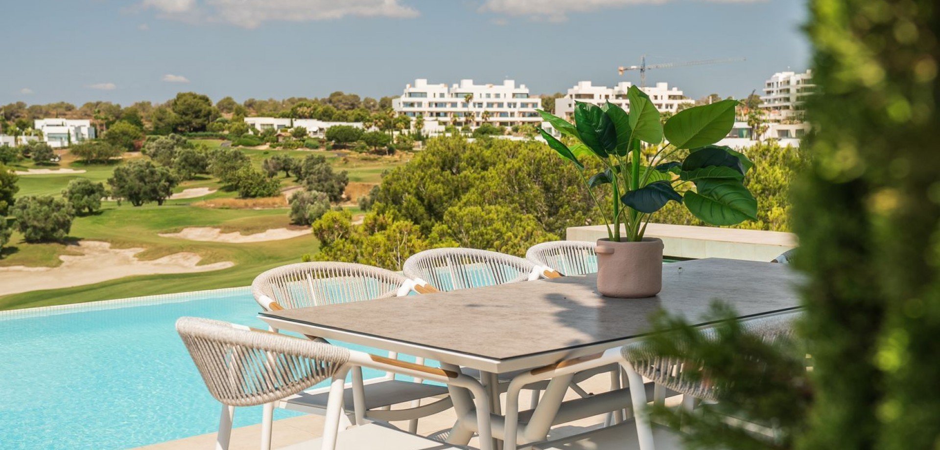 A luxury villa first line to the Las Colinas golf course in Orihuela Costa, this property boasts a stunning infinity pool with views of the course, endless terraces, a cosy back garden, parking for two cars and a beautiful, bright living, dining and kitchen area. ~~There are a total of four bedrooms and three bathrooms as well as a guest toilet split across two levels with the main living level housing three bedrooms, two bathrooms and the guest toilet and a lower groundfloor hosting a suite wi...