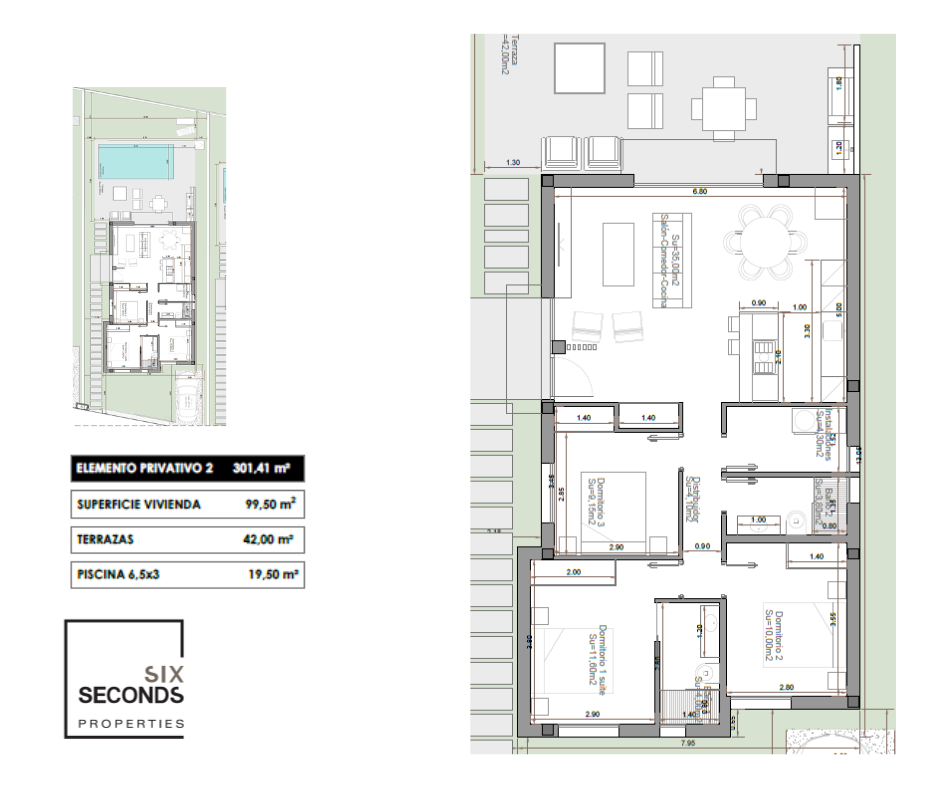 Discover this elegant project of just four detached villas, all designed on a single level , where contemporary architecture , privacy , and comfort blend seamlessly. Each home features three bedrooms , two bathrooms , a spacious and bright living-dining area, a modern open-plan kitchen, and large windows that naturally integrate the interior and exterior. The properties sit on private plots and include a private pool , expansive terraces , and an ideal outdoor area for enjoying the authentic Me...