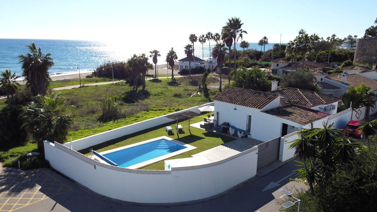 Situated on the frontline of the beach, this villa enjoys absolutely stunning panoramic Mediterranean views from every part of the property, while still being set back just enough to offer privacy. South-facing and positioned on a generous plot, it features a private heated swimming pool and plenty of outdoor space. Inside, the villa offers three bedrooms and two bathrooms, including a master bedroom with its own en-suite. The large, fully fitted kitchen is open plan to the living and dining are...
