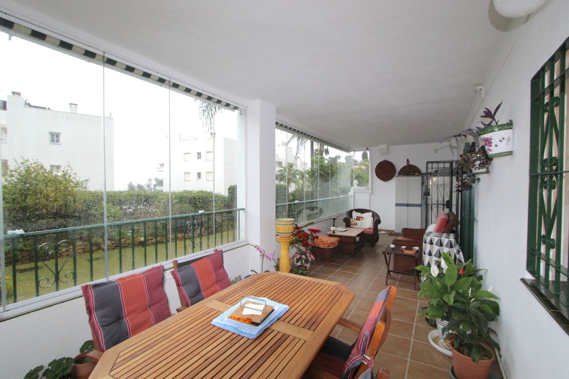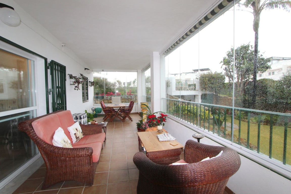 Ground floor corner apartment in the popular Urbanisation of Rancho C, in Miraflores (Mijas Costa) The property has 3 bedrooms, 2 bathrooms (of which one is en-suite), kitchen, open living and dining room leading out to a spacious terrace with glass curtains. The urbanisation is situated a 20 mins walk to La Cala de Mijas with all its shops, bars & restaurants and not to forget the lovely beaches with plenty of chiringuitos which you can reach within 10 mins walk. The Urbanisation is very well l...