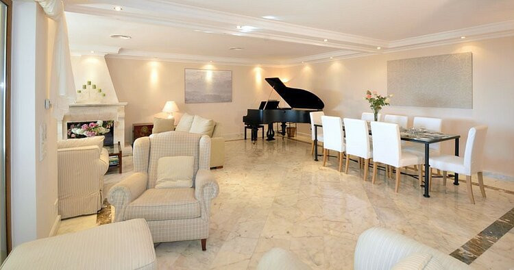 Luxury villa built completed in 2003 and renewed in interior design in 2012. It is located in El Rosario a few min. the center of Marbella. Its strategic location on a slope make it a unique house with panoramic sea and mountain views. This distributed in 3 levels and consists of an entrance hall / TV room and large kitchen Office. In addition, there are two extra-large double bedrooms on the ground floor, sharing a bathroom with laundry facilities. large living room with fireplace that leads to...