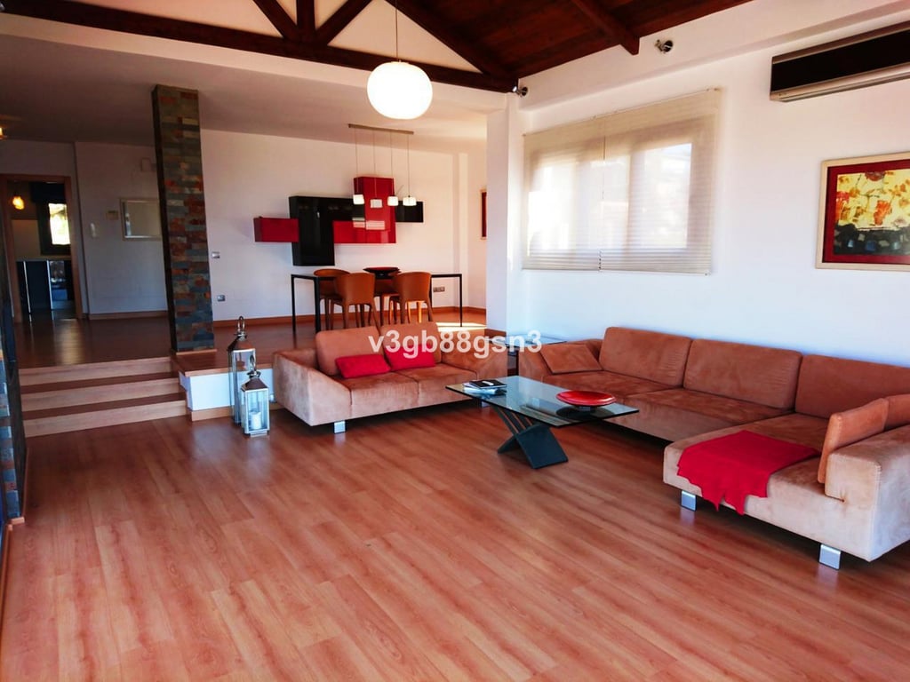 Fantastic villa with panoramic views in the EL HIGUERÓN area of Benalmadena. Located in a private and secure urbanization in the El Higuerón area. It has 4 large bedrooms with fitted wardrobes and 3.5 bathrooms, (the main bedroom has a bathroom en suite, dressing room and fireplace), entrance hall, a spacious living room with fireplace, big windows and wooden ceilings, out to the terrace overlooking the infinity effect pool, and easily maintained outside space. There is a nice fitted kitchen w...