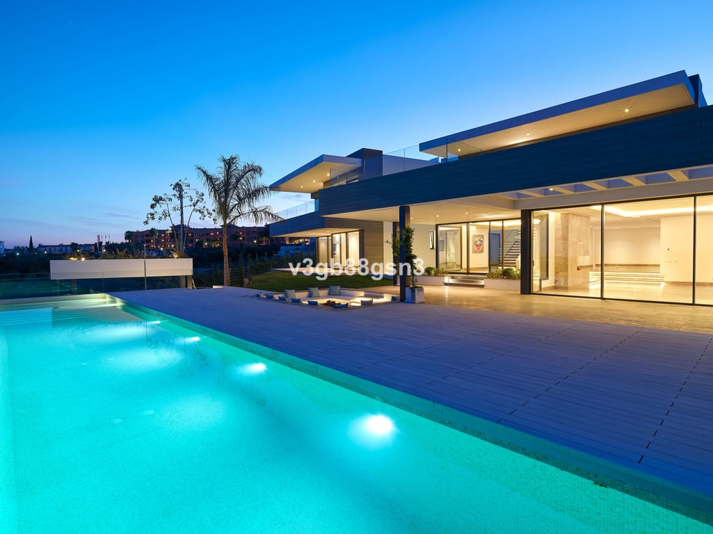 This one-of-a-kind spectacular luxury modern mansion of 1.340 m2 is located on a plot of 2.912 m2 and surrounded by 5 golf courses, in Los Flamingos, Benahavís, Málaga, Spain, with unbeatable panoramic open sea views. Created according to the criteria of sustainability and ecology, it has been carefully designed, with the best organic and breathable building and insulation materials. Modern luxury until the end! This magnificent property has 5 bedrooms, 5 bathrooms, 343 m2 covered and sunny terr...