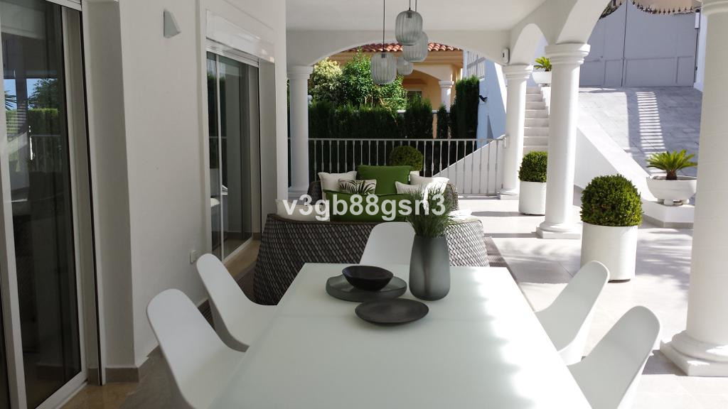 Amazing villa with wonderful views sea and mountain views, 7 bedrooms and private pool in enclosed area. Located close to Calanova Golf club house and golf courses and just a few minutes from La Cala de Mijas, located in a cul de sac, very quiet and safe. It is a large plot with private garden, swimming pool, warehouse and garage. It has 7 bedrooms, 5 full bathrooms, a bright and large living room, fully fitted kitchen and several terraces around the house with magnificent views. It is a vil...