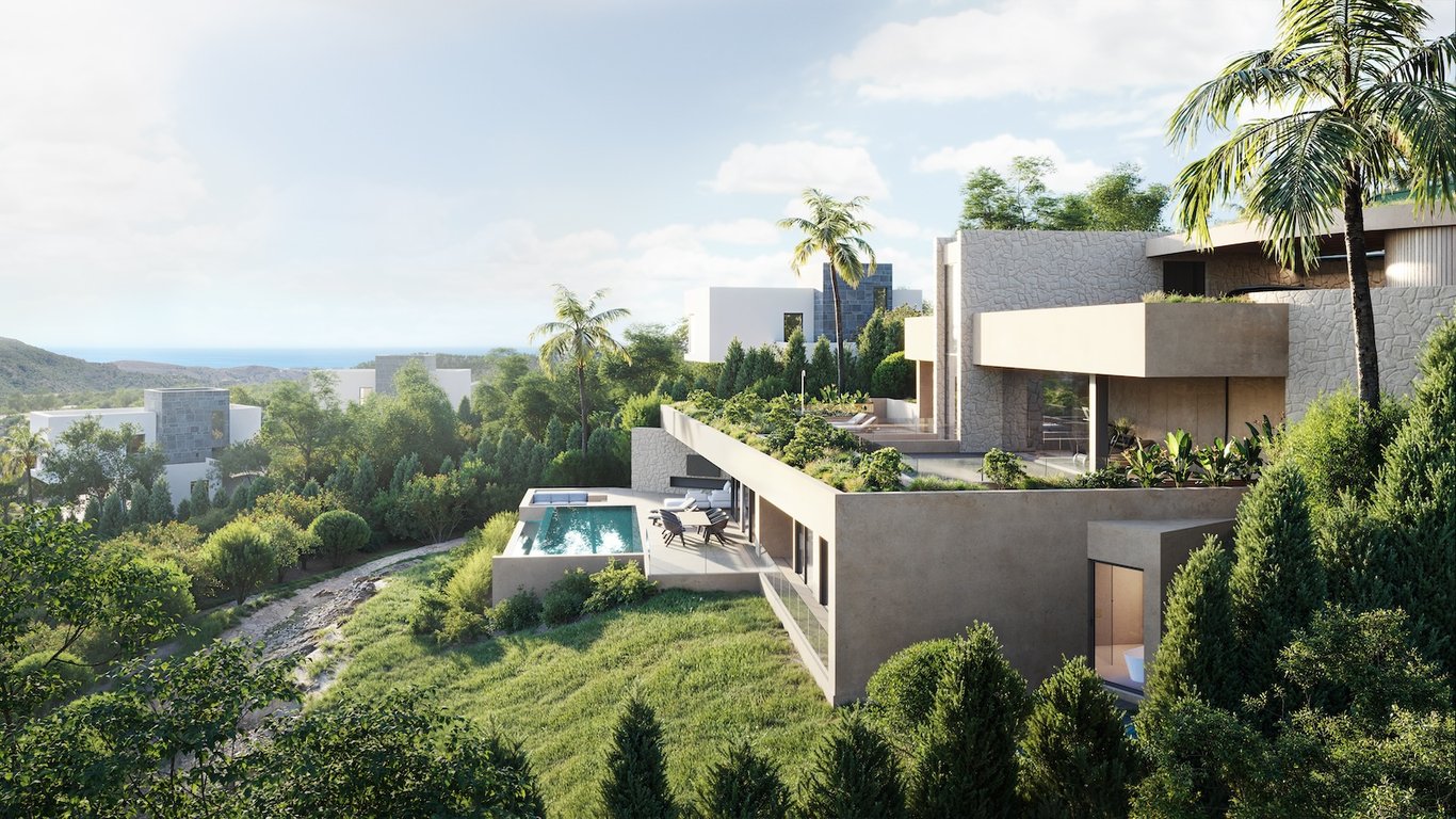 3 levels Contemporary Designer Villa in a natural hill environment of Montemayor. A privileged viewpoint location with panoramic views over the coastline and the Nature.24h security in a gated community with security cameras.3 bedrooms ensuite and a separate cloakrooms on main level and another one by theswimming-pool. The upper level has a space for a gym, a covered terrace and ourdoorkitchen.Garage for 2 cars on top pf the villa. High ceilings and full size windows create the feelingof space...