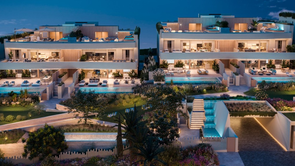 32 penthouses with solarium, swimming pool and jacuzzi; 32 apartments with garden, private pool, terrace and basement; and 32 semi-detached villas with private pool, jacuzzi and solarium. Spaces that can be adapted to different needs, prioritising the best qualities, so you will find both luxury villas with private pools, solariums, large gardens, and modern duplex apartments. Located at the foot of one of Marbella’s most charming beaches, the entire development will enjoys direct access to th...