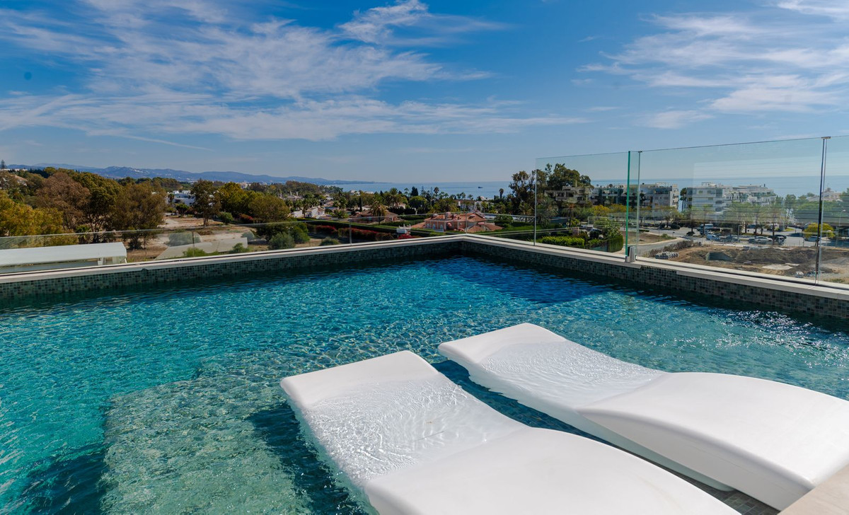Extraordinary Triplex penthouse offering ultimate level of luxury on the Golden Mile, making you feel as if being in a villa built in the sky. Located near the beach in recently constructed ´Benalus´ urbanization with 24h security, tropical gardens, state of art spa, sauna, gym, outdoor and indoor heated pool. Simply a great match for most demanding individuals. This phenomenal property consists of 3 levels, all easily accessible via a private lift, ensuring living without boundaries. Welcomed t...