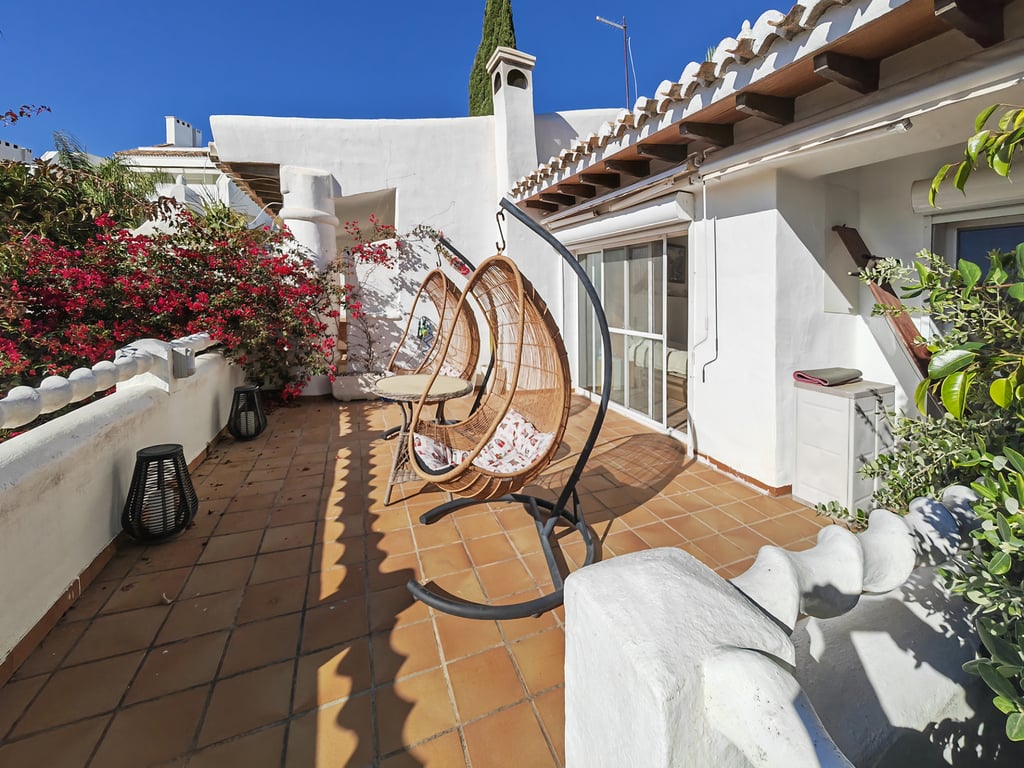 Nestled just a few steps away from pristine sandy beaches, this beachside townhouse for sale in Marbella presents an enchanting fusion of rustic charm and contemporary luxury, resulting in an irresistibly inviting and stylish living environment. Upon stepping into the ground floor of this townhouse, you are greeted by a double-height hallway, setting the tone for the spacious and well-designed interior that combines functionality and contemporary elegance. This floor welcomes you with a luminou...
