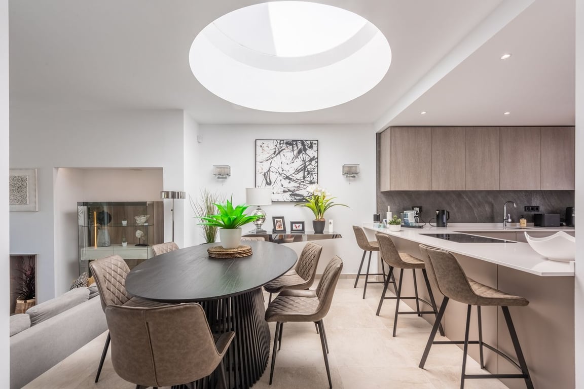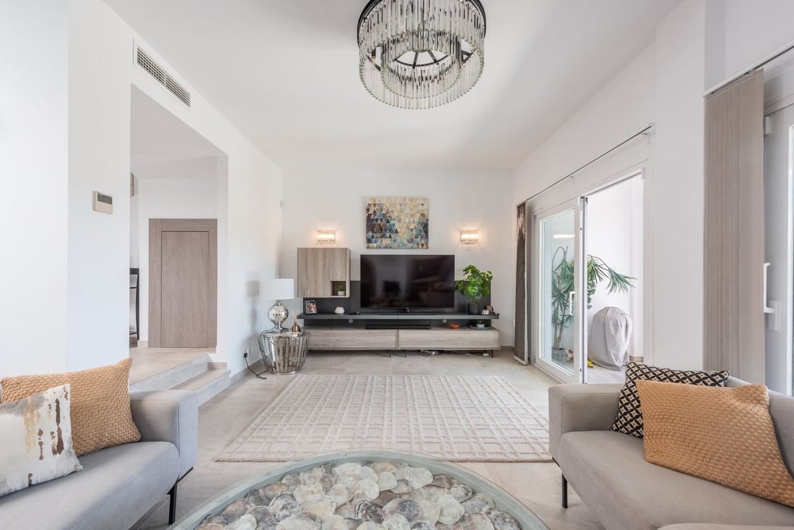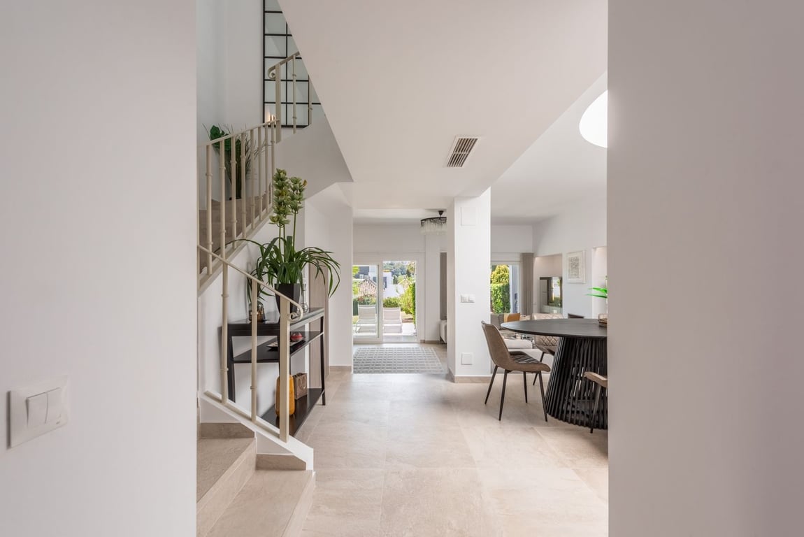A lovely 3 bedroom townhouse in the heart of Nueva Andalucia. Recently fully renovated and in immaculate condition, this property is ideal for either a family home or as a holiday home. As you first enter you are greeted by a private terrace which leads to the front door but can also be accessed from the kitchen. There is a large, open plan kitchen and living and dining area, this is a bright, open space which leads through to the beautiful terrace and gardens. On the ground level there is al...