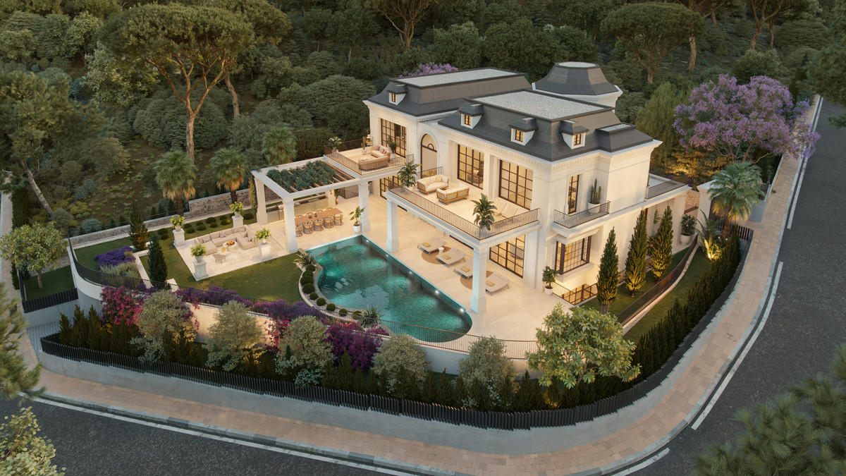 Amazing new villa in a corner plot with open sea views to be completed by 2027- Nestled in the secluded and sought after private enclave of Sierra Blanca, this amazing style villa has it all. 6 large bedrooms all en-suite with walk through wardrobes and private terraces. Elevator connecting all floors to the spacious entrance lounge and dining are with open plan designer kitchen. Spa area with indoor wellness facilities and health area. Spacious garage for 6 cars plus more outside. PLEASE ...