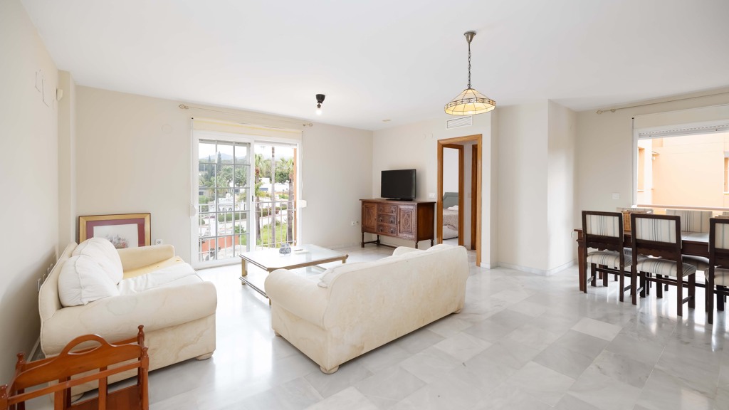 Duplex penthouse in the area of Costabella, Marbella East, just 200 meters from one of the best beaches in the city, with 3 bedrooms and 2 bathrooms. Gated community with communal areas, gardens and swimming pool. Second floor without lift. It has 117 m2 built spread over two floors. The main floor comprises an entrance hall, a spacious living-dining room with access to a terrace, a kitchen with laundry room and the master bedroom with en-suite bathroom. On the upper floor, there are two bedroo...