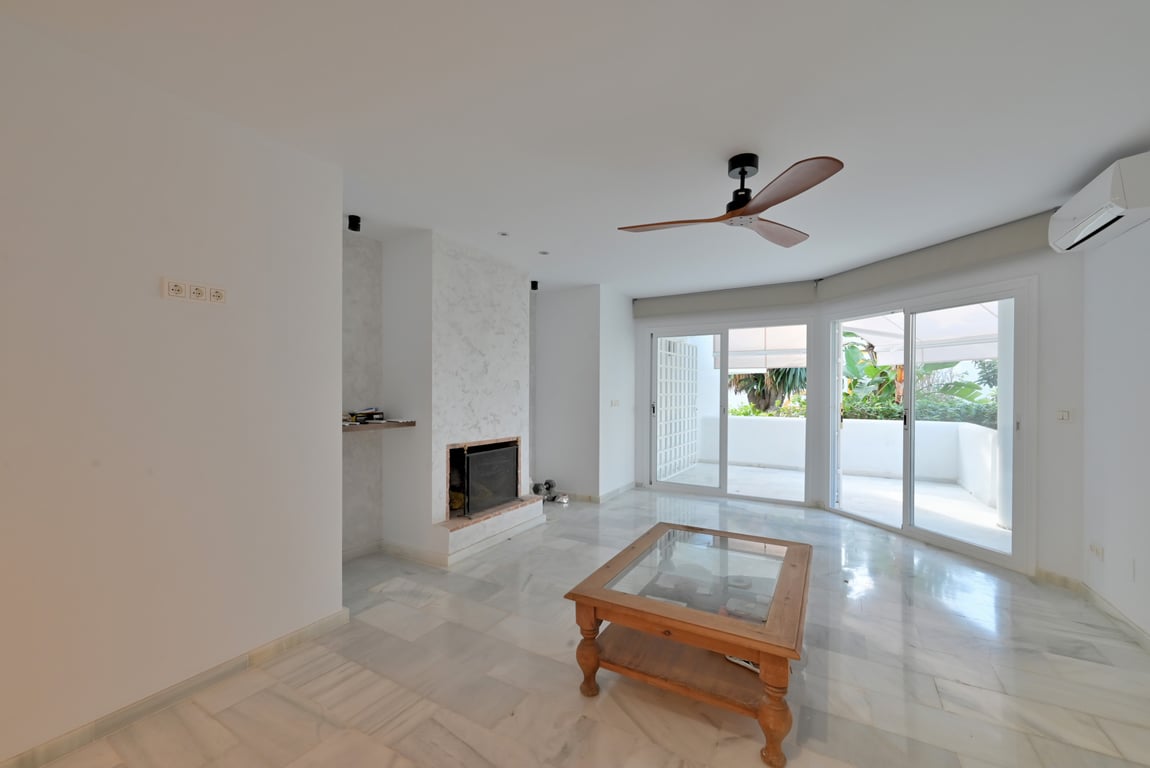 Ideally located in the highly sought-after area of Artola Baja, this beautifully renovated two-bedroom townhouse is just a five-minute stroll from the beach and the protected sand dunes. The property is distributed over two levels. On the ground floor, you will find a modern open-plan fully fitted kitchen, a guest toilet, and a bright and airy lounge-dining area complete with a cosy fireplace. From the living area, doors lead out to a spacious west-facing terrace , perfect for enjoying the after...