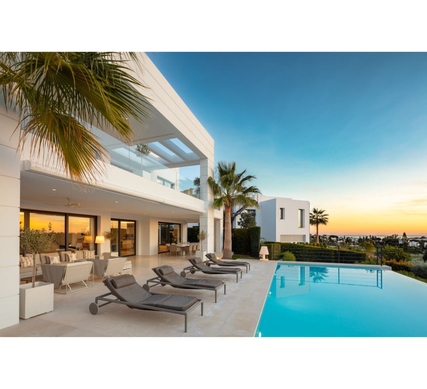 NUEVA ANDALUCIA ... 7 Bedroom, 6 Bathroom Villa FREE Notary fees exclusively when you purchase a new property with MarBanus Estates a modern masterpiece nestled in the heart of Nueva Andalucía’s prestigious Golf Valley. Offering breathtaking panoramic views, this exceptional villa enjoys a prime location, perfectly blending sophistication with convenience. The property’s striking design is complemented by a stunning infinity pool, expansive terraces with chill-out areas, and alfresco dining spac...
