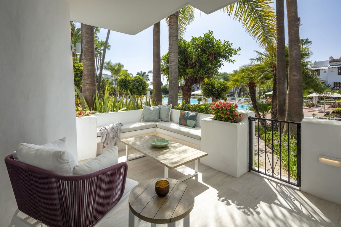 MARBELLA BEACH FRONT AREA, AMAZING 3 Bedroom, Ground Floor Apartment Nestled within the esteemed Puente Romano Resort on Marbella's illustrious Golden Mile, This development presents an exceptional modern apartment experience. This captivating ground floor unit boasts a contemporary interior design that effortlessly combines aesthetics with functionality. The living space is open-plan, seamlessly integrating the living, dining and kitchen areas for a sense of flow and spaciousness. The kitche...