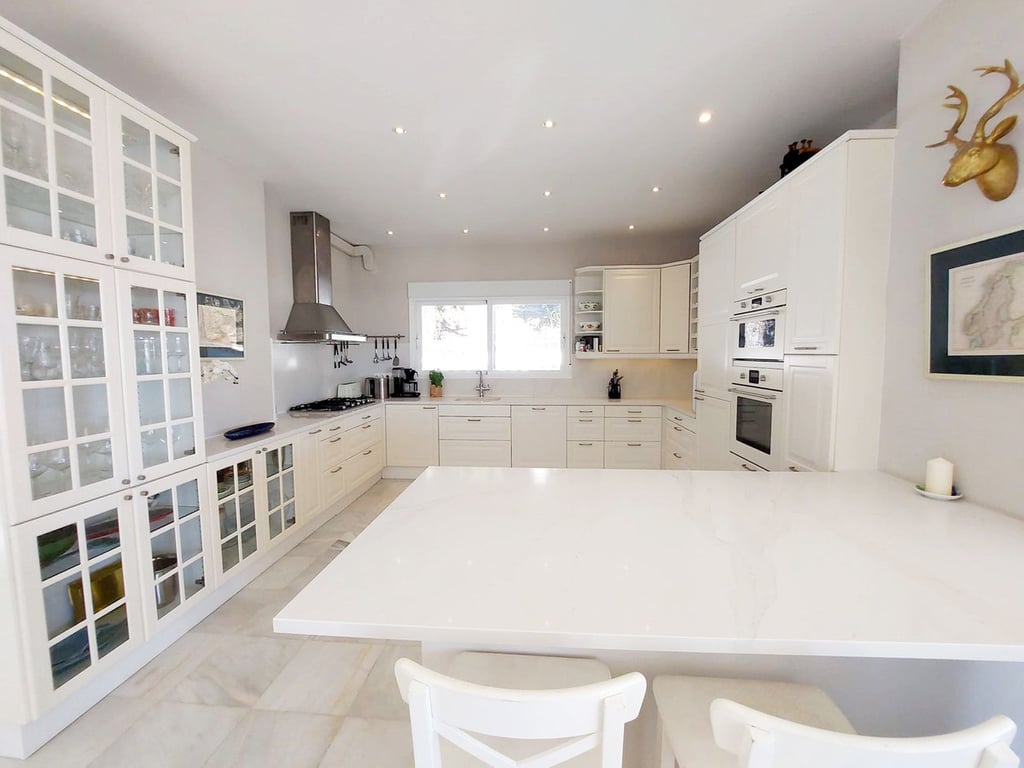 Welcome to this beautiful independant villa with stunning panoramic views in the prestigious urbanisation of Sierrezuela, five minues driving to amenities and ten minutes to the Fuengirola's beaches. The main house offers a fantastic open plan layout with sea views from each corner of the property, beautiful fully equipped kitchen with dining area, large laundry, hall entrance, a large master bedroom with 2 dressing rooms for him and for her and gorgeous en suite bathroom with bath, and pool, pl...