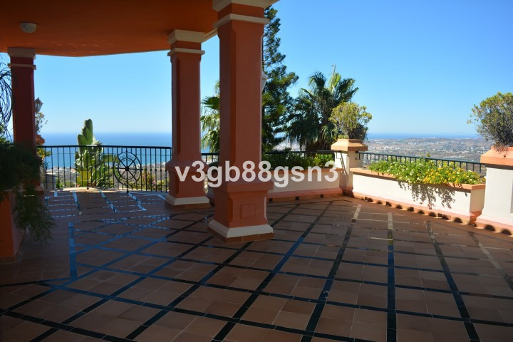 Spectacular detached villa in Mijas with panoramic sea and Mijas mountains views. 897 m2 built on a plot of 4000 m2. The villa has 7 bedrooms, 5 bathrooms - Basement: cellar , two halls , two toilets , bar room, living room , bedroom, closet , utility room and workshop. - Ground floor: Entrance hall , lounge, living room , office, toilet , kitchen, pantry, laundry, service area (bedroom , living room, bathroom) and two-car garage - First floor : Entrance hall, master bedroom with two bathro...