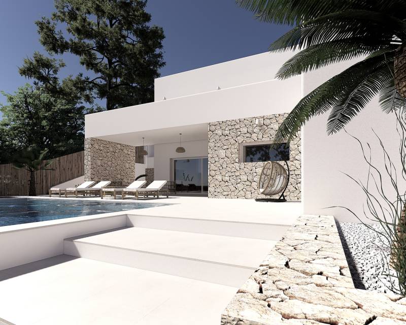 New build villa for sale in Pinar del Advocat This luxury villa is situated within one of Moraira's most sought after locations, just steps away from the town centre and the main beach of Playa l'Ampolla. This stunning contemporary villa is a masterpiece of design with stunning views. The villa showcases a blend of white facades, elegant natural stone walls and tasteful wooden accents. The main floor comprises: lounge-diner with open kitchen and access to the pool area, 2 bedrooms with ensuite...