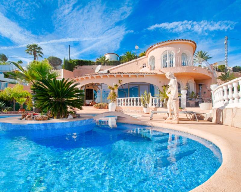 Villa for sale in Benimeit Traditional style villa with stunning panoramic sea views. The property is need of updating and has great potential with spacious bedrooms, unique bathrooms, a lounge with high ceilings and a gallery, separate dining room, fully equipped kitchen, a large winter garden and several spacious terraces. There is central heating and air-conditioning throughout the villa. Outside: beautiful heart shaped pool, lovely garden, fish pond and ample parking space. Additionally, t...