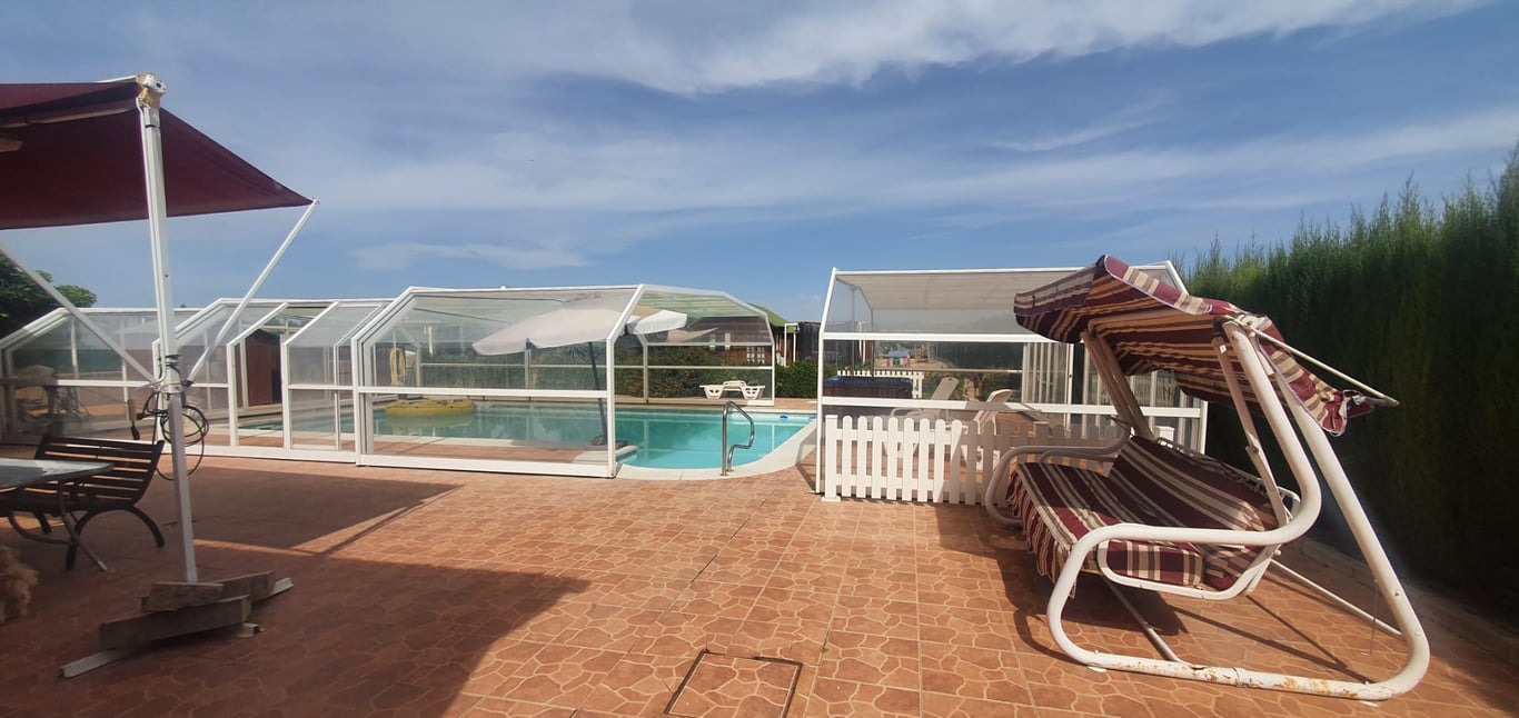 Spanish finca with detached villa and private pool for sale near Murcia City. The finca comprises of 2 properties, first one is a properly built house, elevated from the ground to offer a good insolation with a big front porch, a good sized living room with dinning area, independent kitchen, main bathroom and 2 double bedrooms. Exteriorly, the property has an extra bathroom, built in barbecue with kitchen and a very nice private pool which can be used in hot and cold months as it is heated. Be...