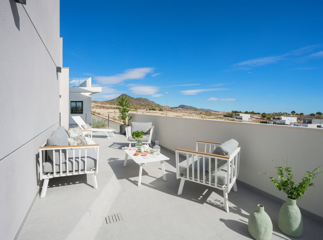 New Build residential of beautiful townhouses in Altaona Golf resort, Murcia.Located in a privileged environment where we can live quietly, in contact with nature and the mountains, we achieve quality of life, fresh air and open spaces.Beautiful 1 level townhouses at Altaona Golf and Country Village are perfect for embracing the Mediterranean lifestyle. Sunny homes designed with an outdoor lifestyle in mind, has 2 bedrooms, 2 bathrooms, open plan kitchen with lounge area, big solarium, front and...