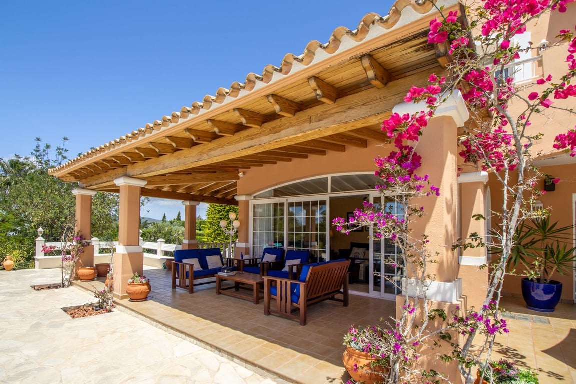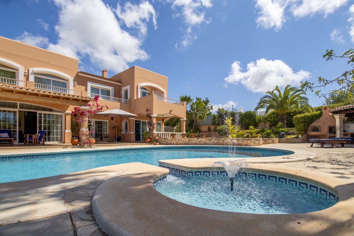 Magnificent property in Can Lluis near Jesús with guest flat. The villa is situated on a fenced plot of 2002 m2 with a constructed area of 740 m2 divided in two levels. With five bedrooms, five bathrooms, large spacious kitchen with all appliances, living - and dining room with fireplace and direct access to the outside area. It has a large swimming pool, garage for two cars, barbecue with covered lunch area and another terrace.The property is very well maintained and in perfect condition. It al...
