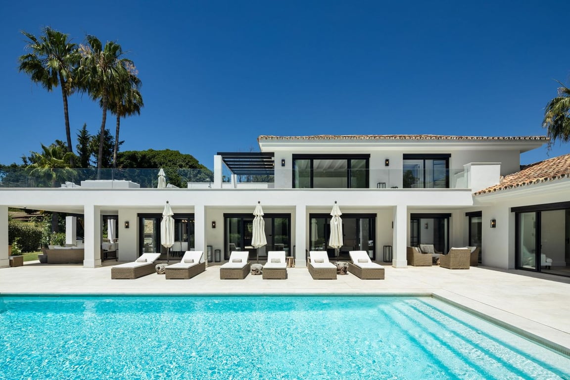 This stunning villa perfectly combines classic exterior architecture with premium interior design, situated in the prestigious area of Nueva Andalucía, Marbella. Offering expansive outdoor spaces, the property features a large swimming pool, a sunken chill-out area, and ample space for alfresco dining and lounging. The entrance is marked by a covered carport for two cars and an eye-catching design that leaves a lasting impression. Positioned frontline to a golf course, the villa enjoys sweeping ...