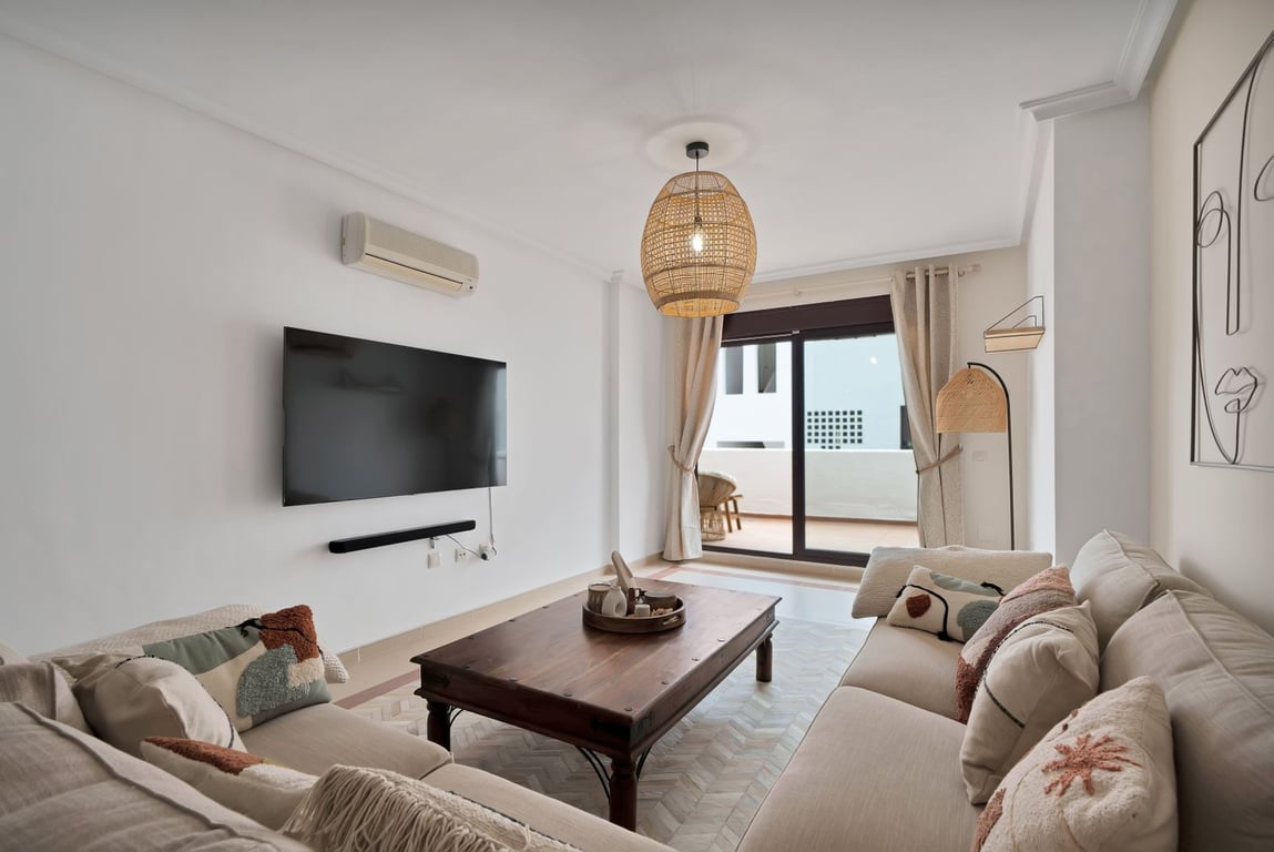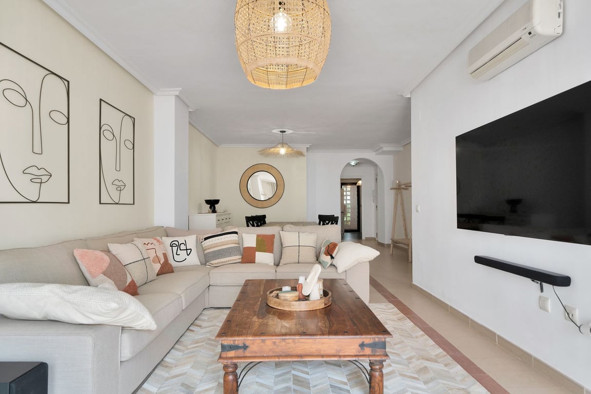 This exquisite, fully furnished ground-floor apartment is situated in one of the most exclusive urbanizations in the heart of Nueva Andalucía. La Maestranza is a highly sought-after community, featuring beautifully designed communal areas, well-maintained gardens, and three swimming pools. The urbanization is securely gated and fenced, with 24-hour security. The apartment's prime location in Nueva Andalucía places you near supermarkets, shops, restaurants, and various services to meet diverse li...