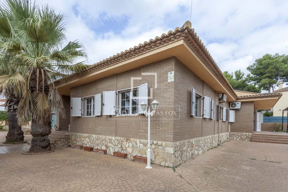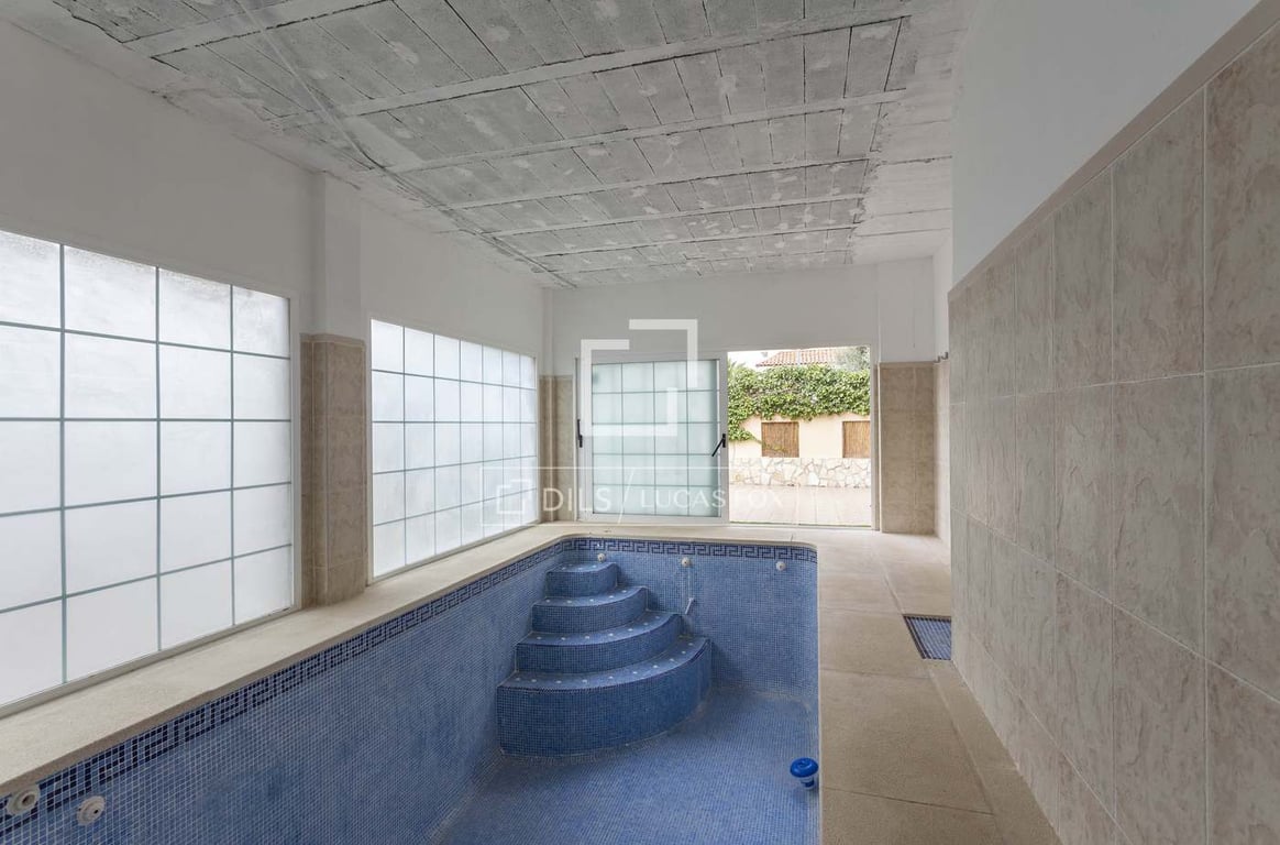 Lucas Fox presents this 400 m2 house built on one floor with an exposed brick façade. The day area has two living rooms with its dining area, one of them with boiserie and the other connected to the kitchen. The large kitchen is fully equipped and has access to a large pantry. The night area has two double bedrooms, two single bedrooms, the master bedroom with its private bathroom and dressing room, and two complete bathrooms. In addition, it has a glass-enclosed indoor pool that you can e...