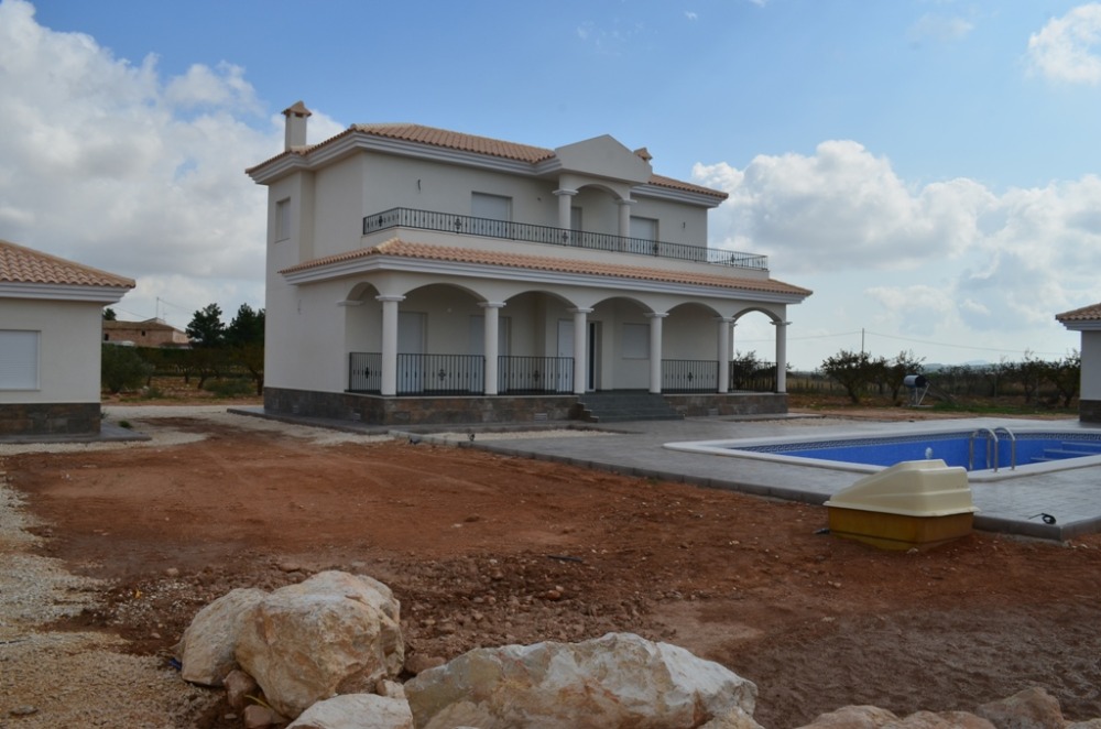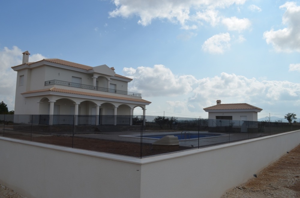 Luxury New Build Villas located in Pinoso and surrounding areas. Prices start from 269,000 for a 120m2 build with 3 bed villas with private pools. This Villa has just been finsihed for our clients and consists of the following: Villa build is 195.00 mt2. 4 Beds, 2 Bathrooms, 2 with ensuites, fully fitted wardrobes, Chimney, large living room, Independent Fully fitted ktchen, Led lighting in all areas, furniture in all baths and showercreens. Price includes the land which is 355,000 euros. All ou...