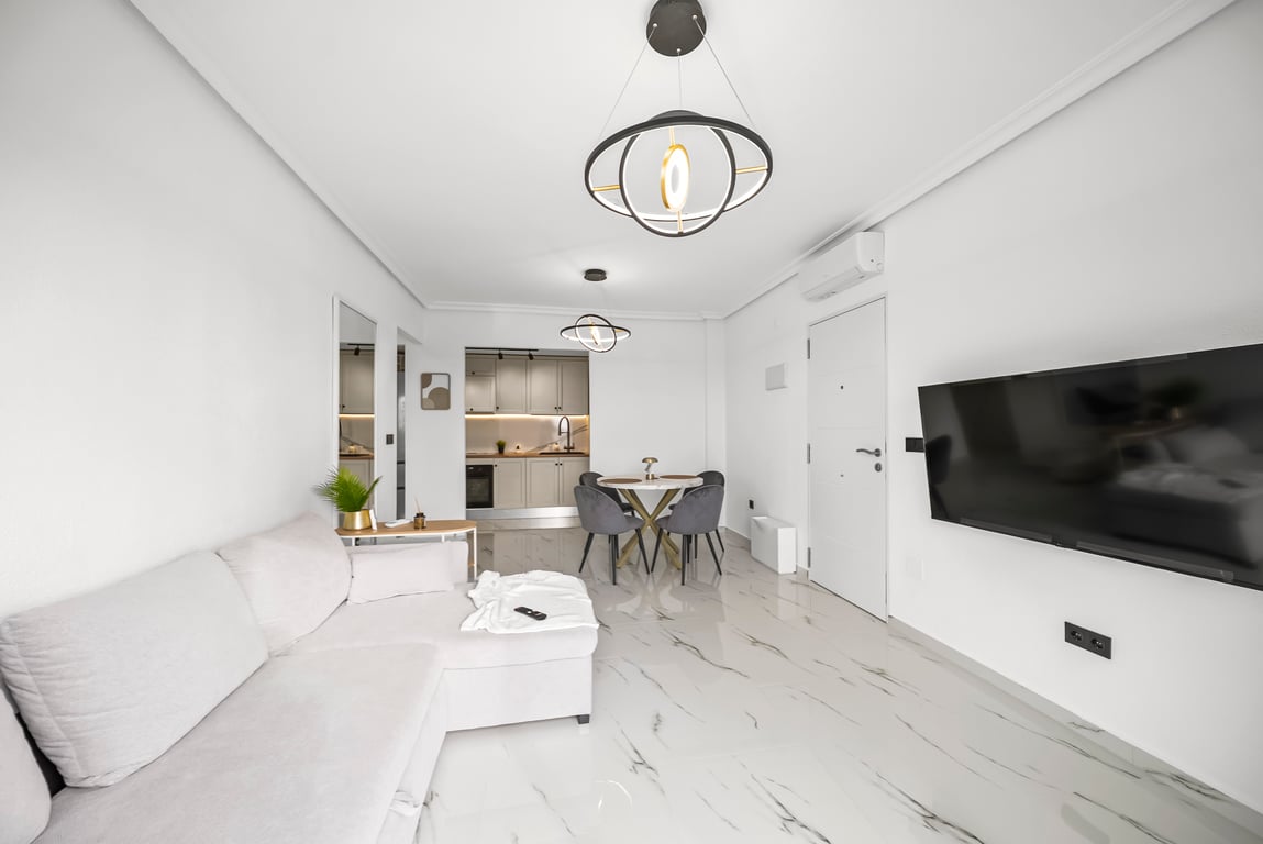 Renovated apartment with sunny terrace and sea views in Zeniamar. Fully renovated in 2025, this apartment is located on the first floor (no lift) in the Zeniamar residential complex, Playa Flamenca. It features 1 bedroom, 1 bathroom, an open-plan kitchen, and a southeast-facing terrace with sea views. Sold furnished, with storage room and access to a communal pool. Key features 1 bedroom 1 bathroom 52 m2 built Open-plan kitchen Terrace with sea views First floor (no lift) Storage ro...