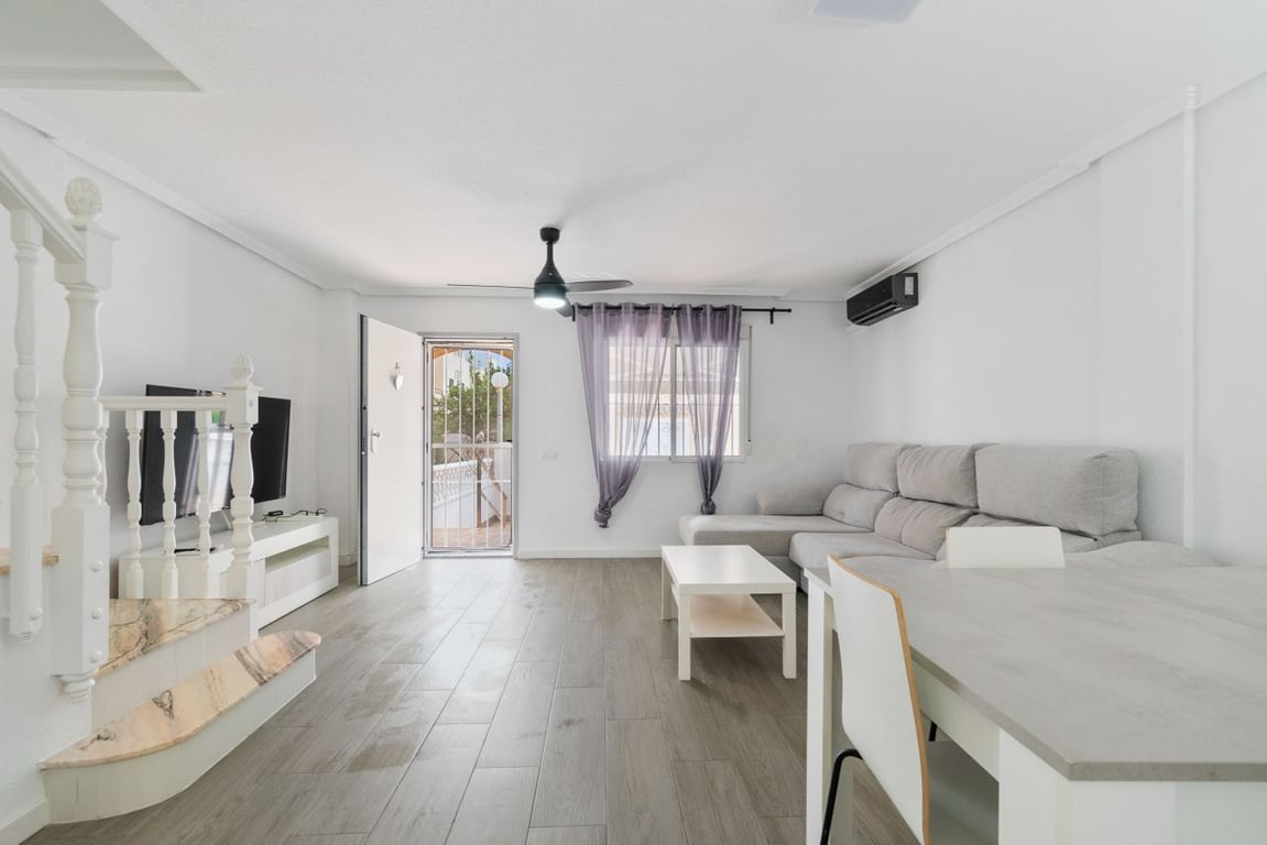 A 2 bed 1 bath quad house with a private rooftop solarium located in Laguna III, Playa Flamenca, Costa Blanca. We are delighted to present this fully renovated and spacious townhouse, ideally located on the popular Laguna II residential complex in the sought-after Horizonte area of Playa Flamenca. Situated within a secure, gated community, this impressive 98m2 property offers three bedrooms, one full bathroom, a guest toilet, a generous living/dining area, and a separate fully equipped ki...