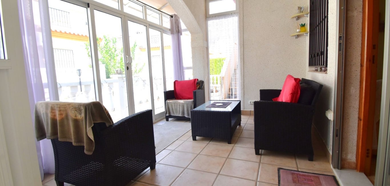 This West Facing, Two Bedroom, Quad Villa in Playa Flamenca is located within walking distance of a wide variety of café bars and eateries, shop, just a couple of minutes walk away. The La Zenia Boulevard Shopping Centre can be reached approximately 15 minutes on foot or just a few minutes by car, while the beaches along the cost are a mere 4 minute drive and several golf courses are within 5–10 minutes. The property is set all on one level and comprises a glazed-in entrance terrace, an ideal sp...