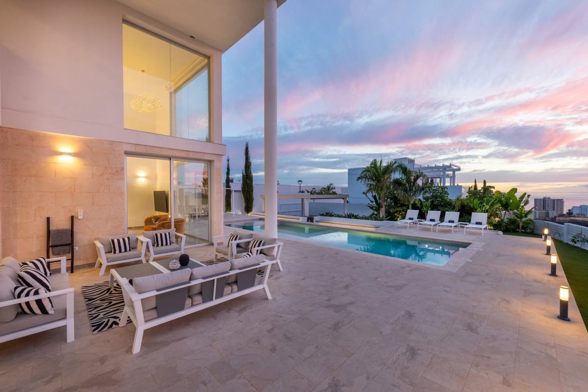 Morfitt Properties are plround to presnet for sale a luxury villa in the beautiful area of Playa Paraiso. The villa has a ravine on one side and then agricultural plots, so there will be no building around it. It has beautiful sea views and always fantastic sunsets. Located on a dead end street with very little traffic. It has a plot of land of 1269m2 and the villa has about 254m2 interior and over 112.94m2 of terraces. It has 4 spacious bedrooms with 4 en-suite bathrooms. Upon entering the v...