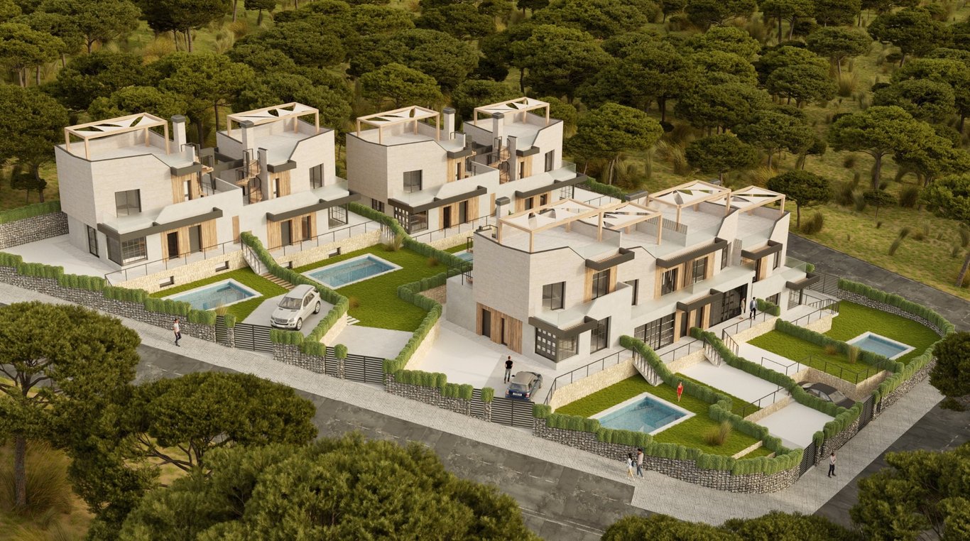 An exclusive new development is being built amidst an idyllic landscape, combining modern living with natural charm. Each of the high-quality, semi-detached single-family homes features three spacious bedrooms, light-filled living areas, and a private pool – perfect for relaxing with family and friends. The stunning surroundings and excellent access to all major amenities make this development the ideal place for families, those seeking peace and quiet, and nature lovers alike. Your benefits...