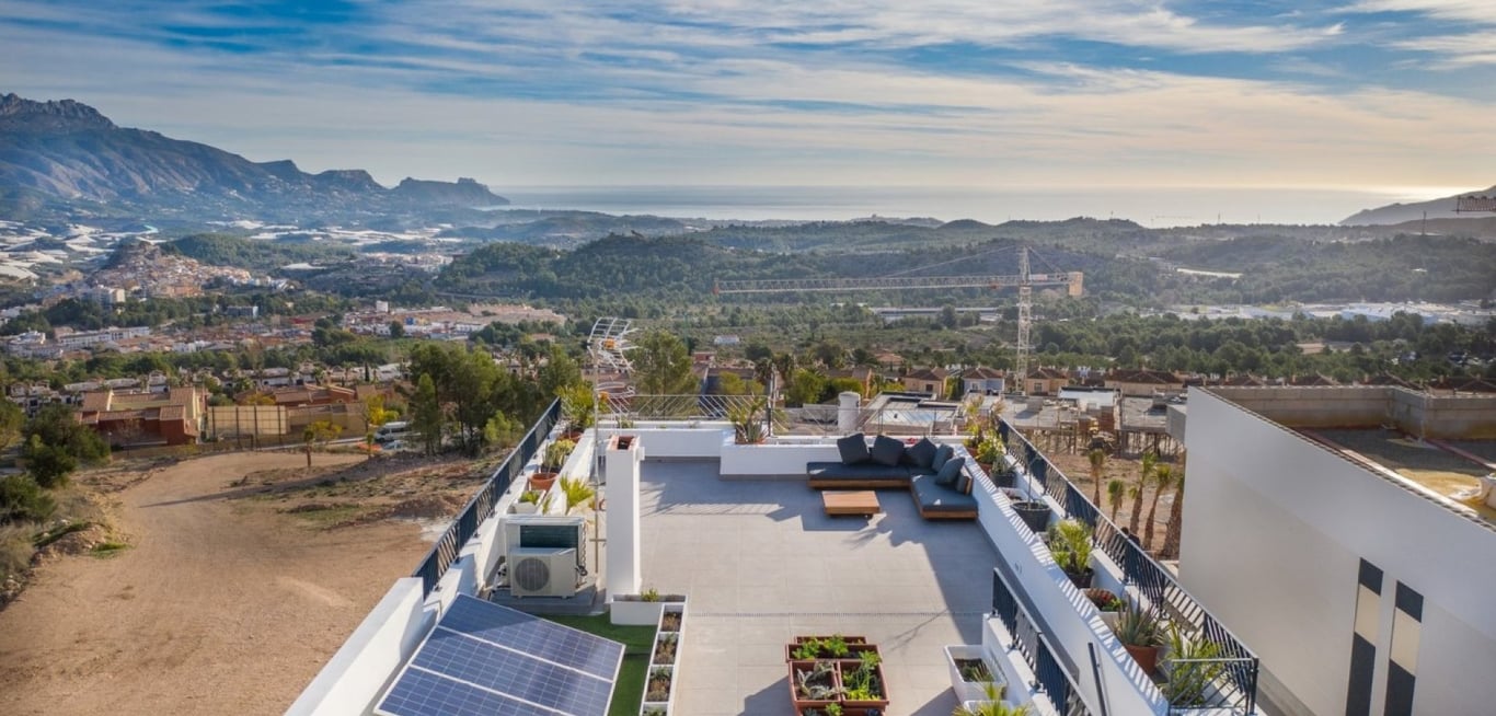 Brand new independent villas with sea views at Polop (Alicante province) Located 10km away from Benidorm beaches and night life and romantic Altea village. This residential benefits from wonderful sea views, comunal pool and social area and houses can be personalized with some extras like private pool, private solarium, underground garage, etc. Different models to choose from depending on your needs and budget, with 2 or 3 bedrooms. Residential has been designed with most of the houses i...
