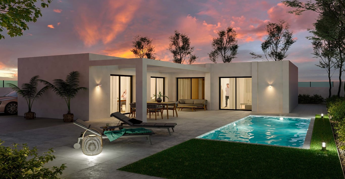 Discover this elegant new-build villa in Polop, Alicante, designed for those who value light, comfort, and exclusivity. With a choice of 2 or 3 bedrooms and 2 bathrooms, this property offers a modern design with an open-plan kitchen, large windows opening onto a sunny terrace, and a private pool perfect for enjoying the Mediterranean climate. It comes with up to two parking spaces and is located just a few kilometers from the Costa Blanca beaches and prestigious golf courses. Surrounded by natur...