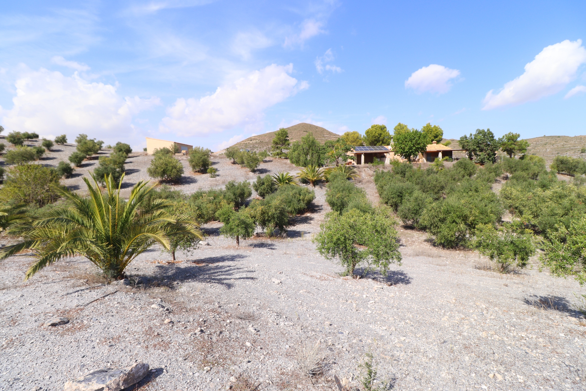 Detached 4 bed 2 bath Farm House with with attached garage-workshop and adjacent front car port and a further car port to the rear of the house; large porch/covered area to the front of the house and extended terrace with BBQ area. On a upper level further outbuilding/barn/garage with extended terrace to the front; on a further upper level there is a small store shed and two huge undeground concrete water deposits (150m3 capacity one of them and 300m3 the other one). Set in approximately 17 hect...